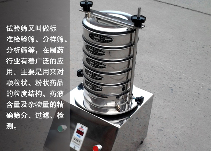 試驗(yàn)篩又叫做標(biāo)準(zhǔn)檢驗(yàn)篩、分樣篩、分析篩等,在制藥行業(yè)有著廣泛的應(yīng)用。主要是用來(lái)對(duì)顆粒狀、粉狀藥品的粒度結(jié)構(gòu)、藥液含量及雜物量的篩分、過濾、檢測(cè)。那么,下面主要講一下試驗(yàn)篩在制藥行業(yè)中是如何應(yīng)用的?