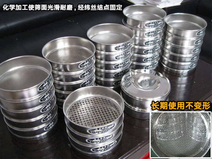 篩框采用SUS304(0Cr18ni9)不銹鋼拉伸拋光而成,壁厚0.6毫米,表面光可鑒人,整體成型堅固耐用,沒有磁性,篩網與篩框通過錫焊固定,不會松弛。能耐300度以下高溫。