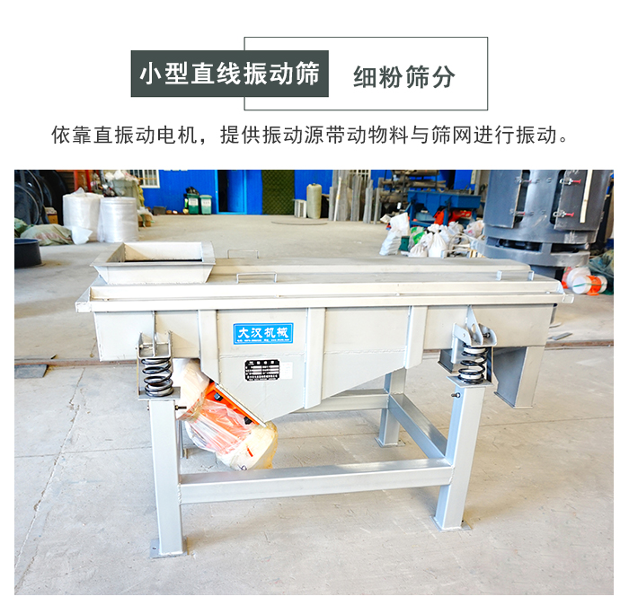 大型直線振動篩電機功率大,小型直線振動篩電機功率小,看您的篩分要求產量大就選大型直線振動篩,因為功率大,您的篩分要求產量低的話就選用小型直線振動篩,電機功率小的